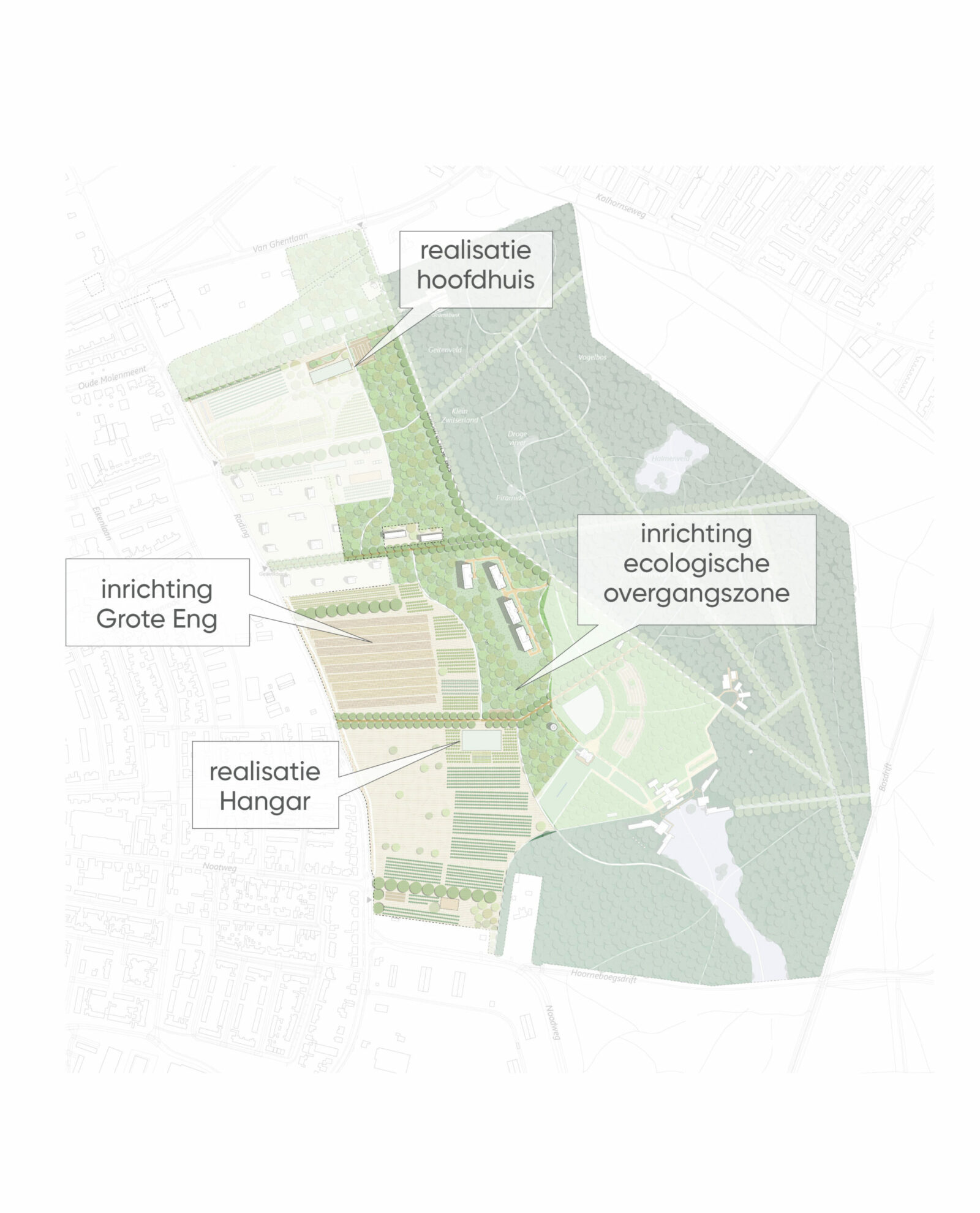 In de periode 2028 – 2030 leveren we oa de bijgebouwen op de Kleine Eng op en repareren we de historische paden en lanen.